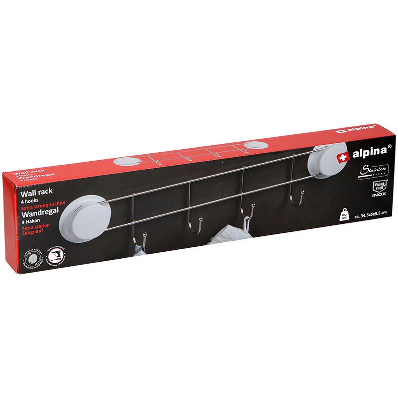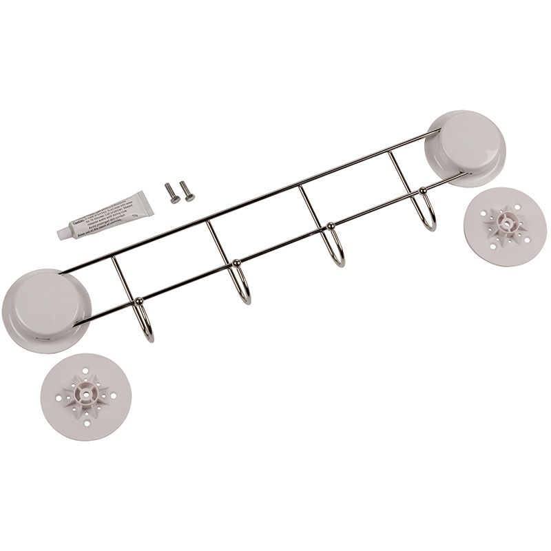 - RVS wandrek met 4 haken met extra stevige zuignappen: gewoon duwen en draaien...., dus geen gereedschap nodig