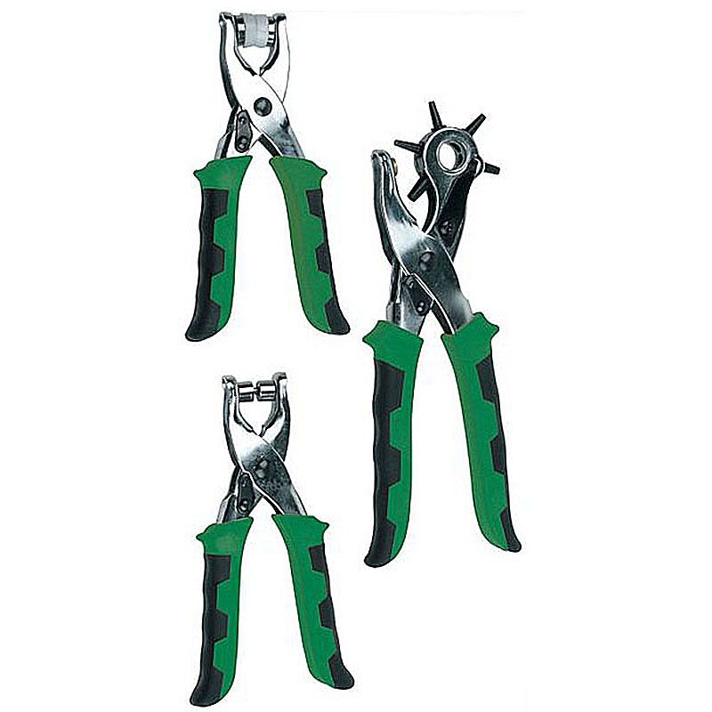 - Revolver-, oog- en drukknooptangenset, 3-delig met assortiment ogen en drukknopen.