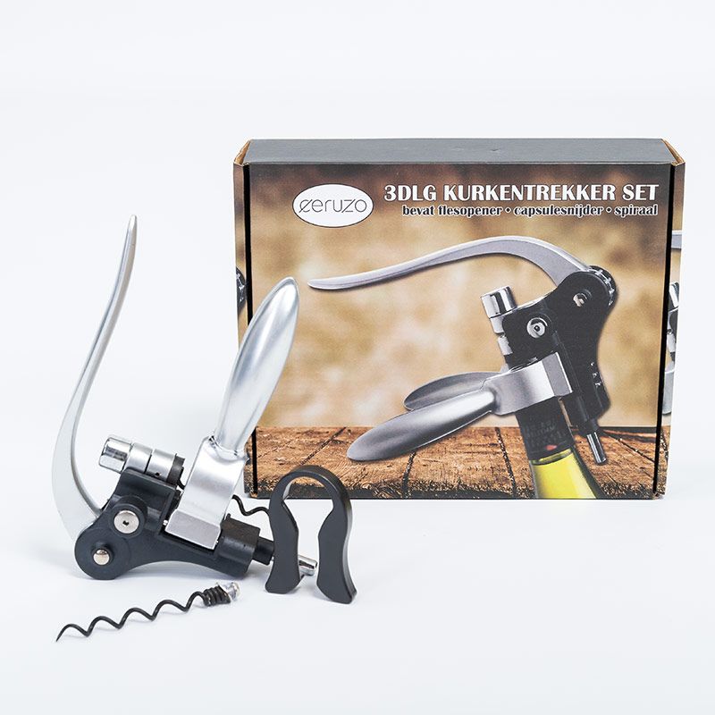 Met deze luxe opener van Ceruzo ontkurk jij in een handomdraai je wijn- of champagnefles. De grijpers aan de kurkentrekker hebben een goede grip op de fles en dankzij het hefboommechanisme maak jij elke fles zonder moeite open. De flesopener wordt geleverd met capsulesnijder en spiraal en is daarnaast verpakt in een mooie geschenkdoos. Hierdoor is de set perfect om cadeau te geven.